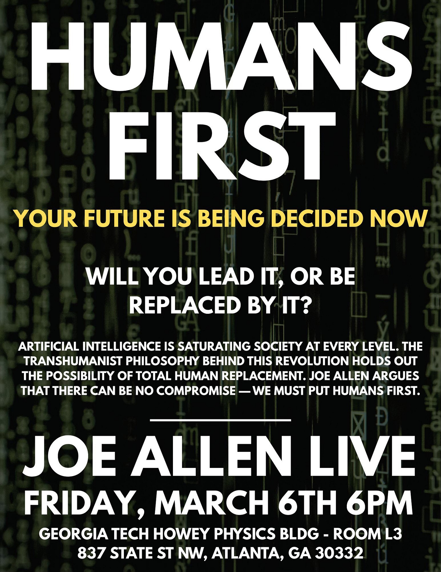 TONIGHT, March 6 - I’m giving a talk at Georgia Tech — C’mon down!!